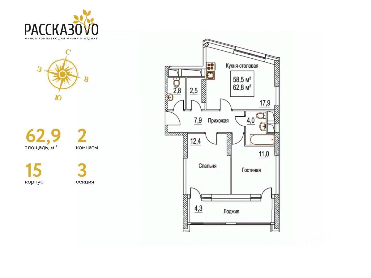 Общая площадь62,9 м2