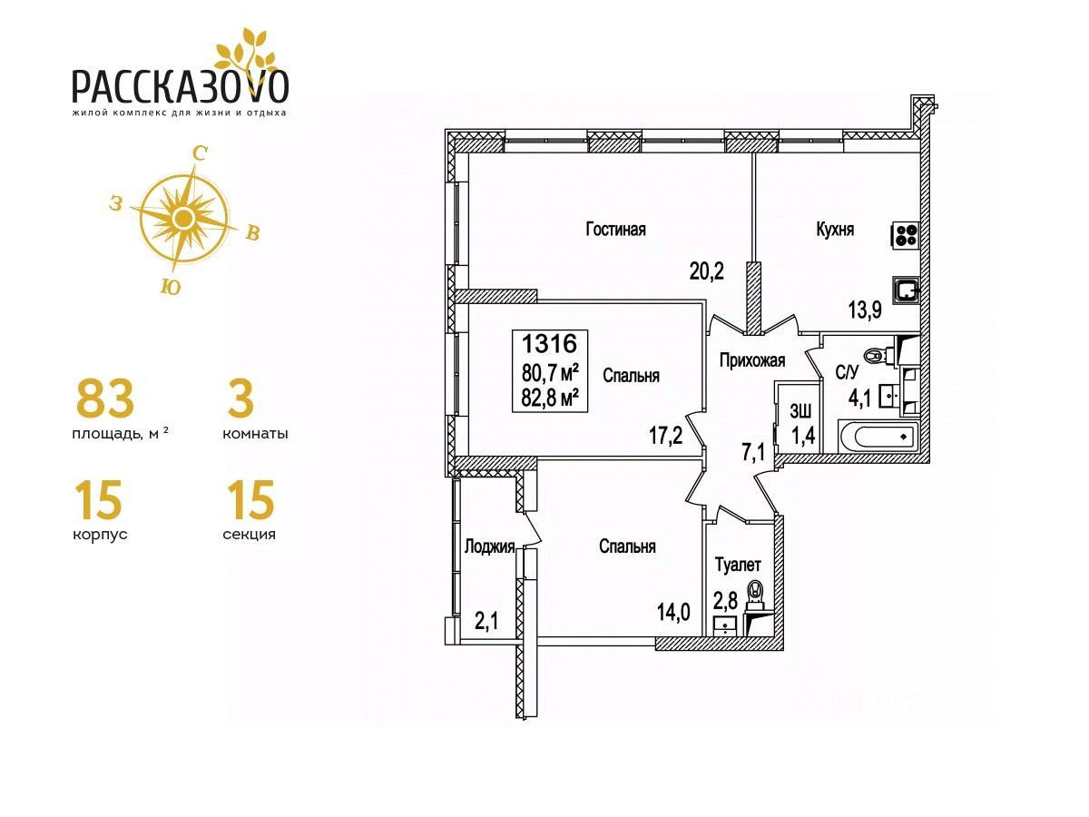 Общая площадь83 м2