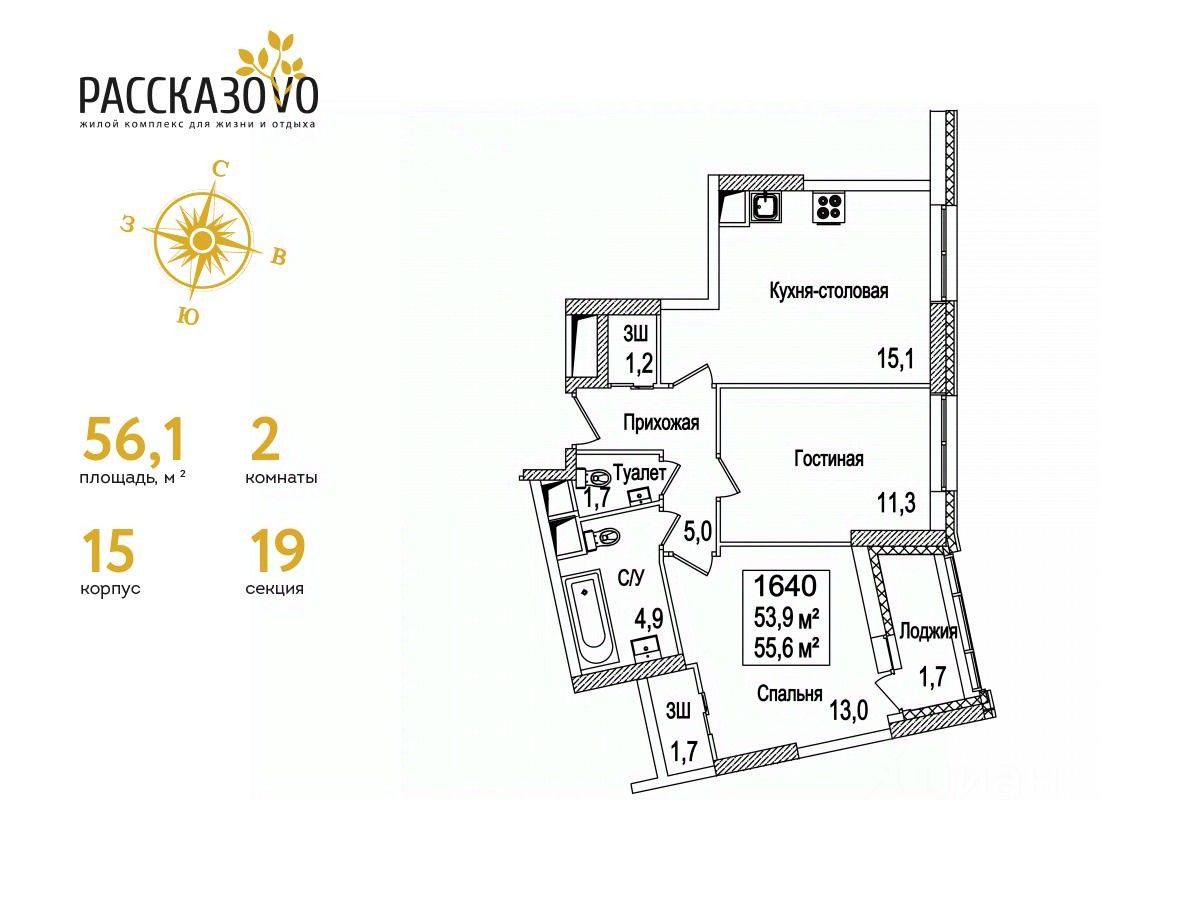 Общая площадь56,1 м2
