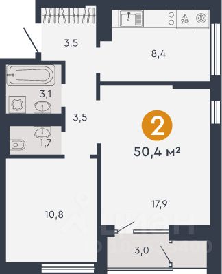 Общая площадь50,4 м2
