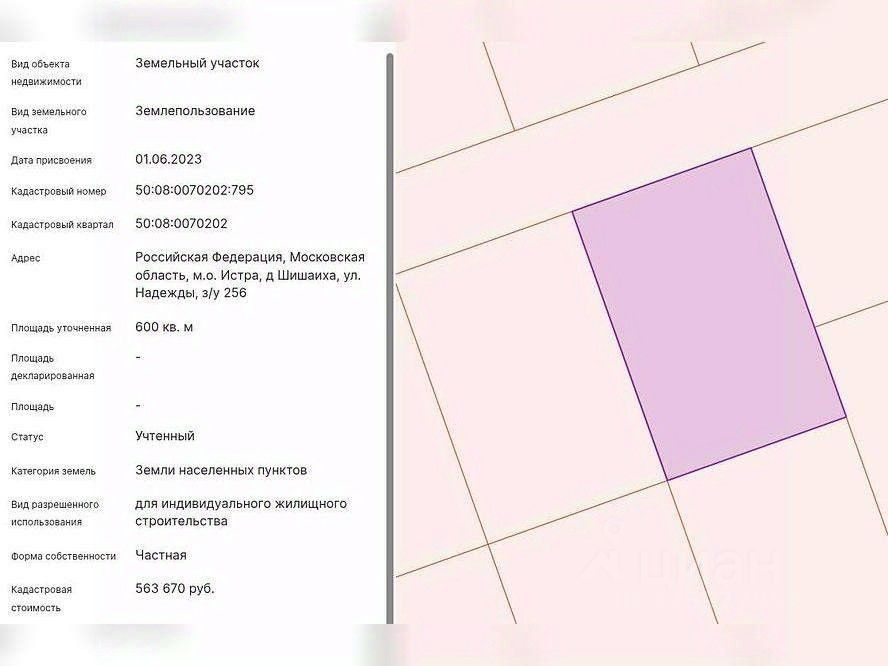 АУКЦИОН. Объект реализуется через электронный аукцион с 2026-01-01 по 2026-01-31 Имущество реализуется путем проведения торгов в форме аукциона в соответствии с Федеральным законом ''О несостоятельности (банкротстве) '' от 26.10.2002 127-ФЗ. Земельный участок кадастровый номер: 50: 08: 0070202: 795площадь: 6 соток по адресу: Московская область, д Шишаиха, Российская Федерация, городской округ Истракоординатны: 55.99375382, 36.64168405Прием заявок будет осуществляться на сторонней электронной торговой площадке, задаток 10%. Помощь от Сбербанка - Агентский сервис по участию на торгах. Агент за Вас оформит документы, подаст заявку и примет участие на торгах. Специалисты Банка сопровождают процедуру участия в торгах ''под ключ'': - регистрация на ЭТП,- подача заявки,- торги,- сопровождение сделки купли-продажи. Все вопросы можно уточнить на сайте активов банка Portal-DA. Либо обращаться по телефону в будние дни с 09: 00 до 18: 00 по МСК.