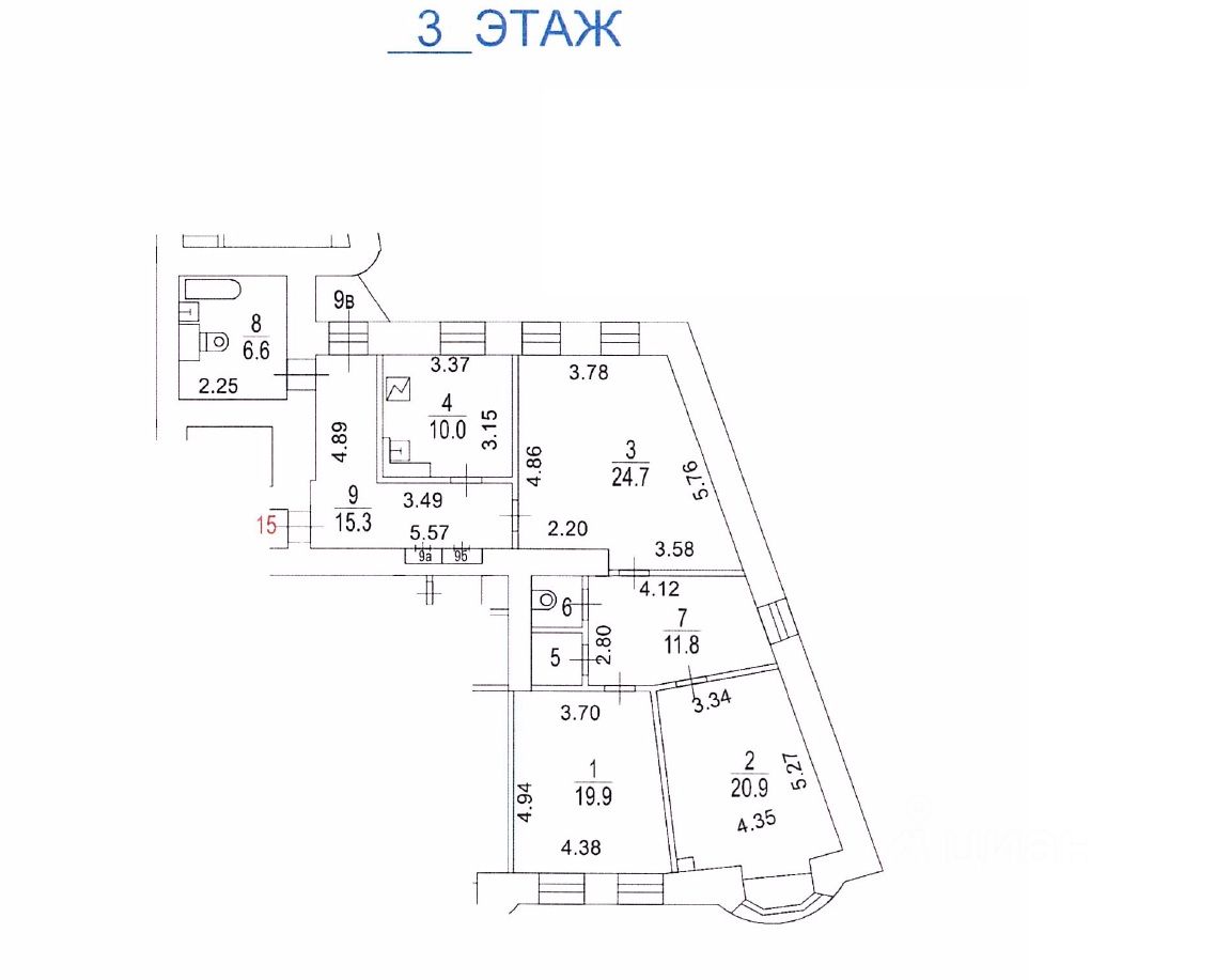 В кирпичном доме в ЦАО продаётся просторная 3-х комнатная квартира.