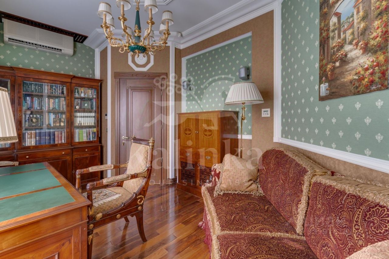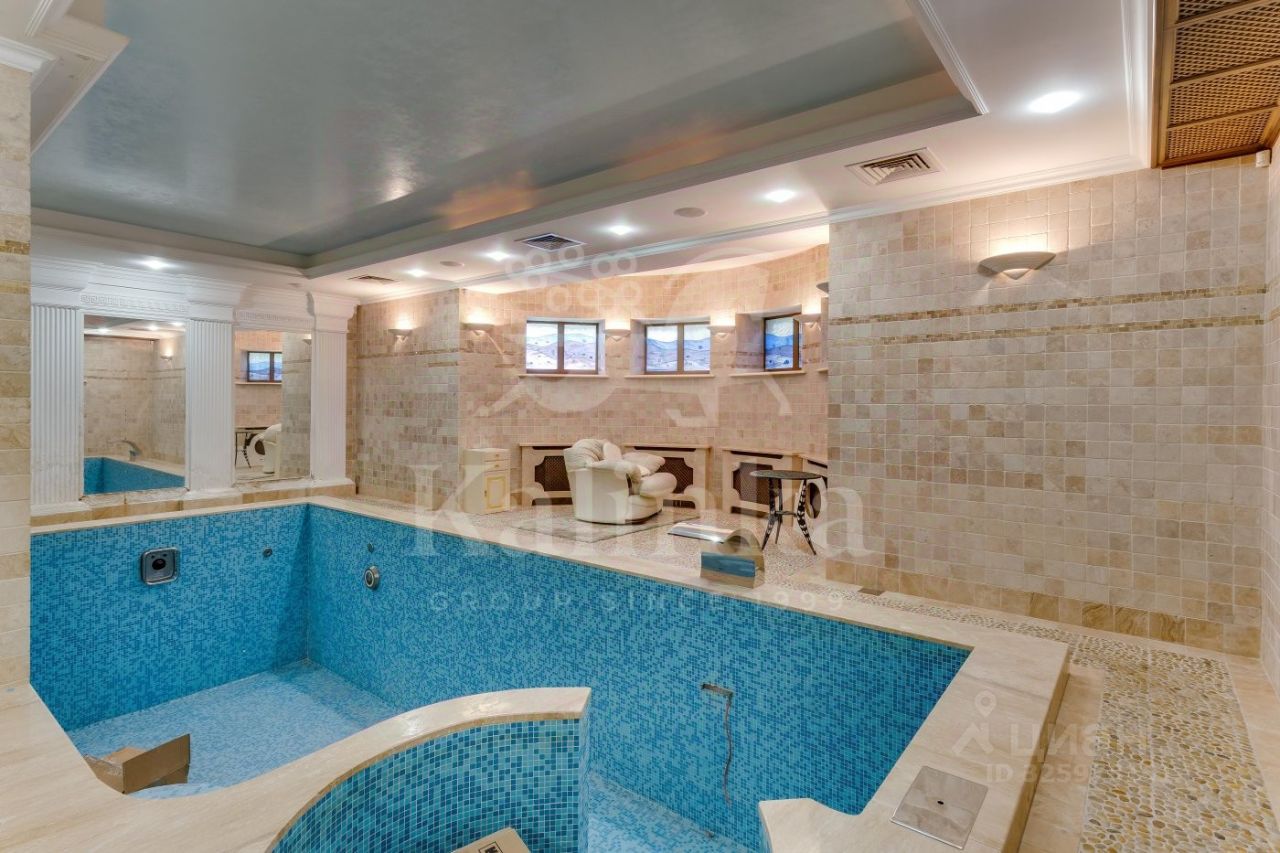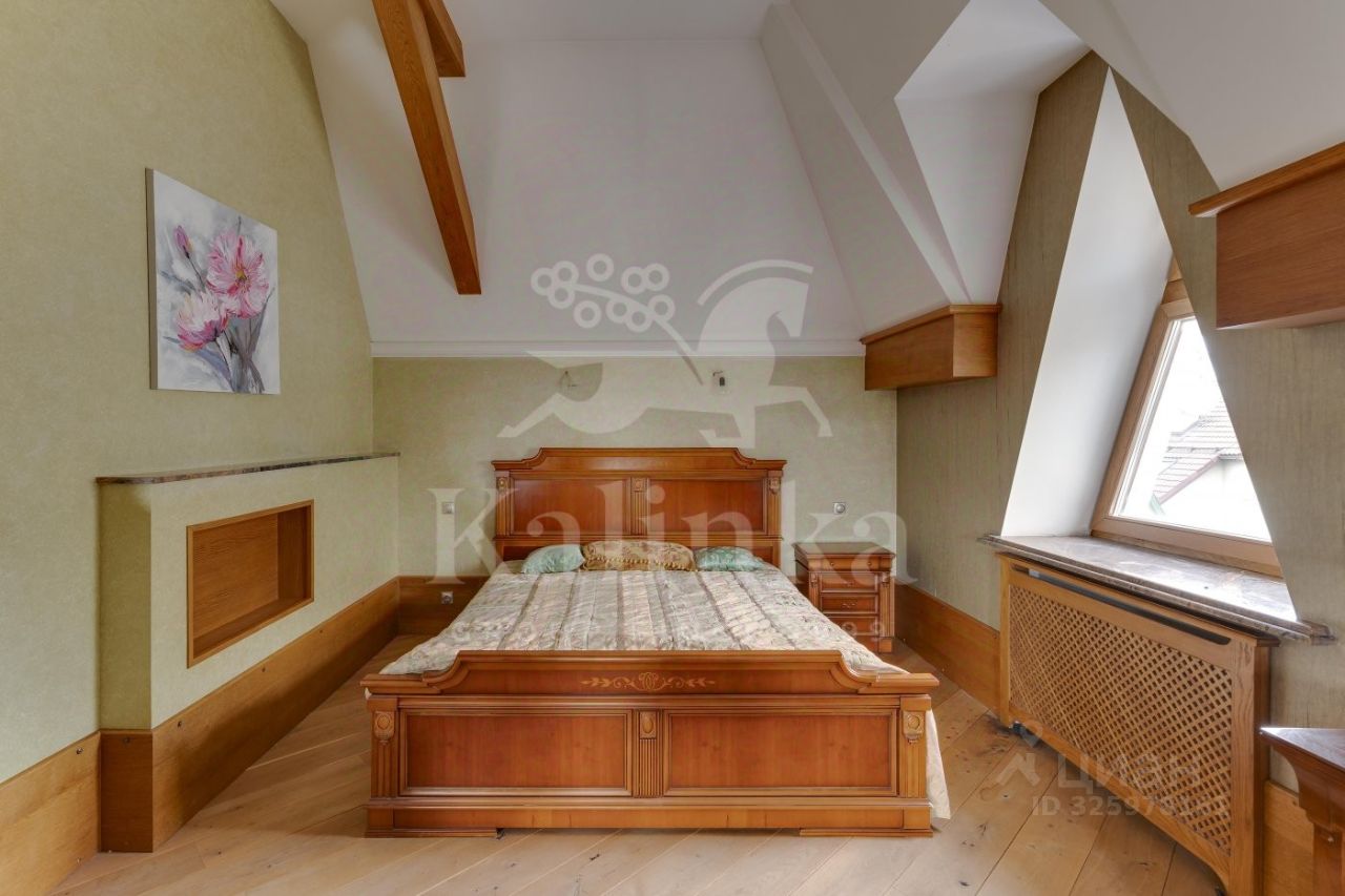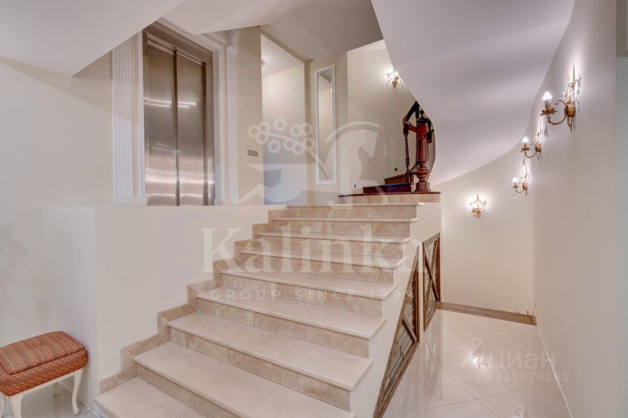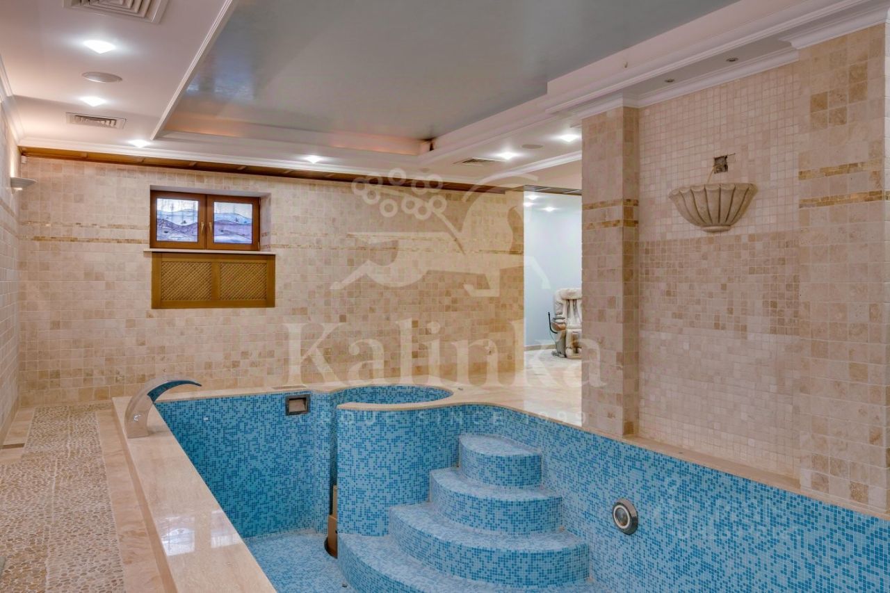 Коттедж в классическом стиле, построенный из кирпича. В доме 3 этажа, для удобства передвижения предусмотрен лифт. Прекрасная SPA-зона с 7-ми метровым бассейном и баней. Просторная светлая гостиная площадью 48 кв.м. Здесь множество окон и дровяной камин, который создает особую атмосферу. Высококачественная отделка из натуральных материалов, паркет из канадского ореха, техника от Miele. На третьем этаже большое свободное пространство для организации зоны отдыха. Здесь установлен камин и проведена подготовка для домашнего кинотеатра. Есть отдельное помещение для персонала (спальня, кухня, с/у, постирочная). Теплый гараж на 2 м/м, над гаражом эксплуатируемая кровля. Также в доме установлены: водоочистка, приточно-вытяжная вентиляция и центральное кондиционирование, центральный пылесос, подведено оптоволокно, в доме локальная сеть, видеонаблюдение, сигнализация. Цоколь: бассейн, душ, сауна, с/у, тех.помещения, 1 этаж: Уровень 1: гараж на 2м/м, комната персонала, с/у, постирочная, котельная, холл-прихожая, гардеробная, с/у, Уровень 1,5: гостиная, кухня, терраса, Уровень 3: кабинет, гостевая спальня, гардеробная, 2 этаж: гостиная, спальня, с/у, гардеробная, спальня с отдельной комнатой, гардеробная, с/у, 3 этаж: помещение свободного назначения, с/у.