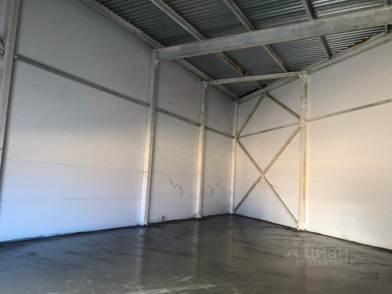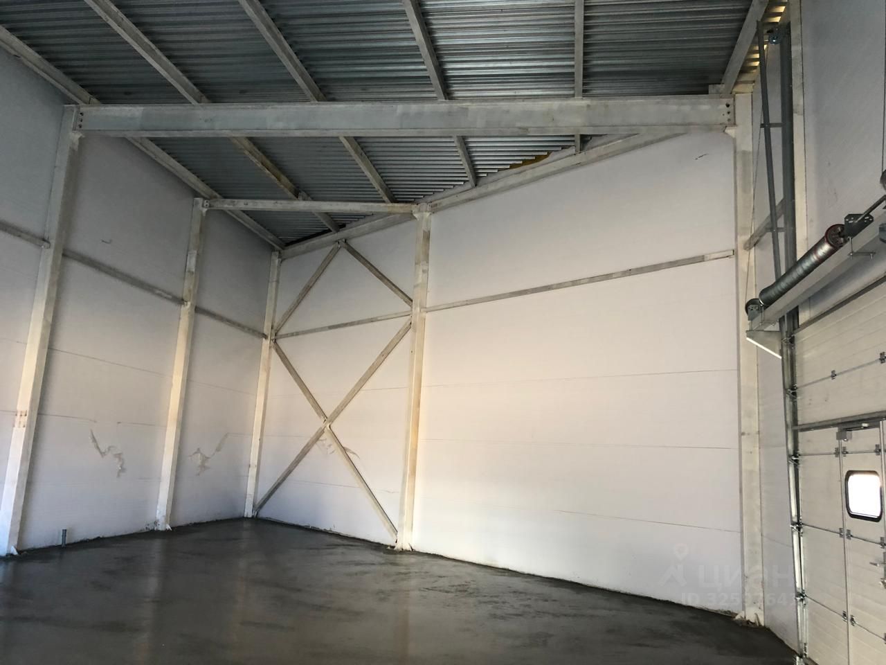 Высота потолка 6,1 м. Полы с анти пыльным покрытием. Двое автоматических ворот.