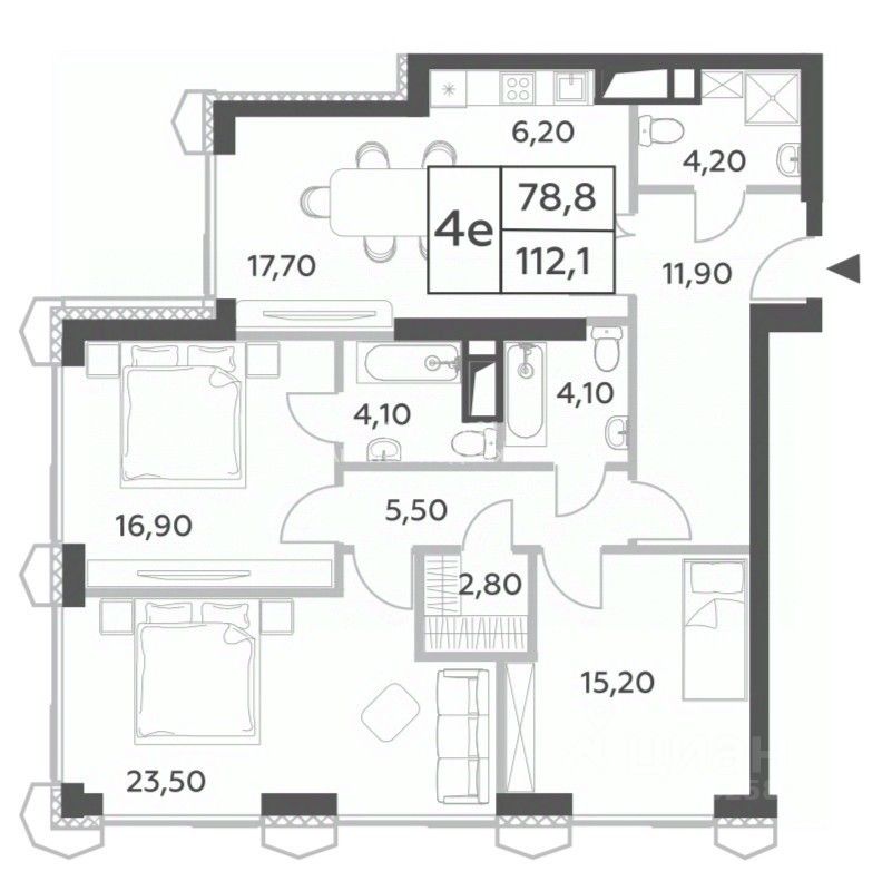 Продается четырехкомнатная квартира в Жилом комплексе премиум-класса ''Will Towers''.