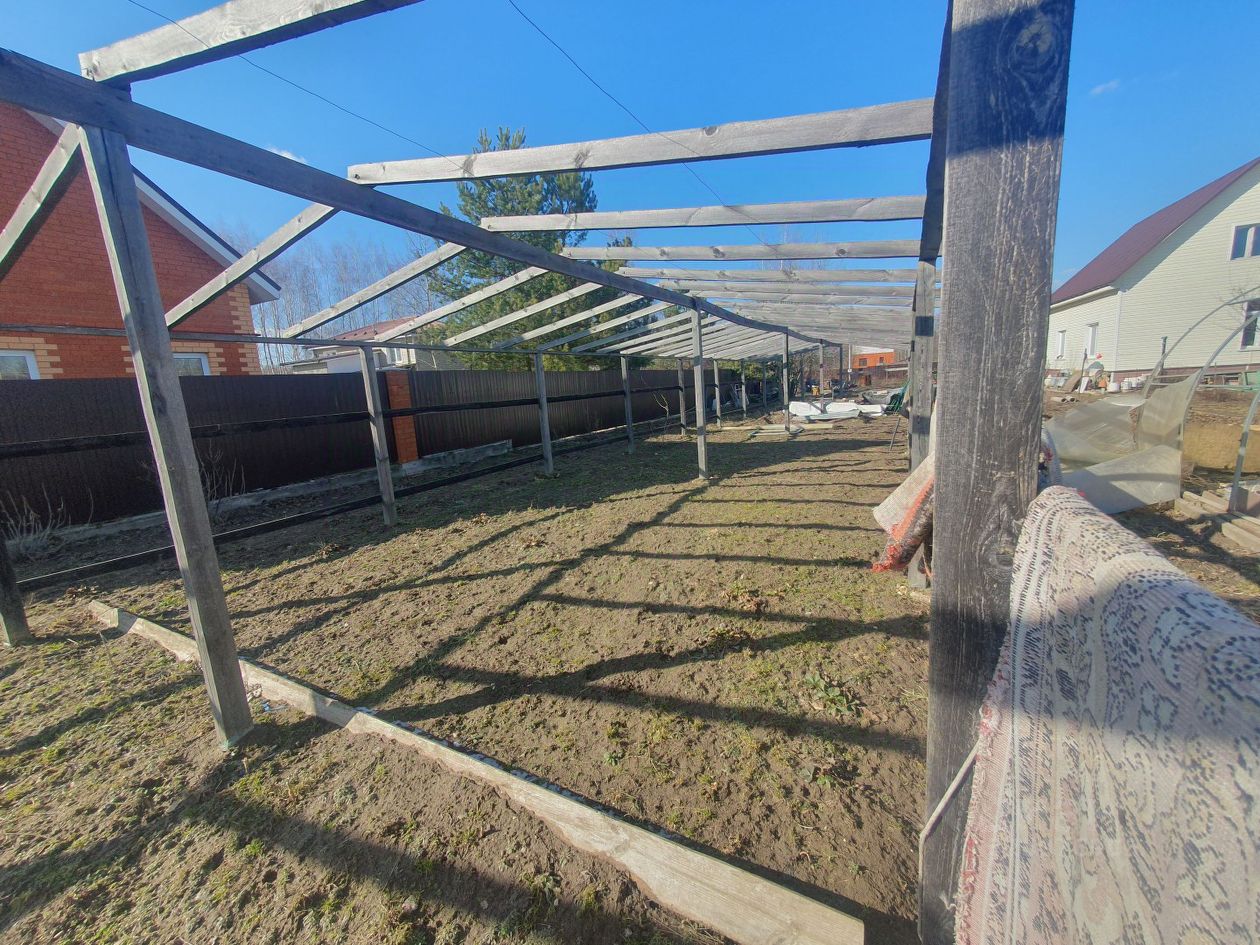 На участке остаётся уличный туалет и каркас от теплицы можно использовать или убрать, как удобно.