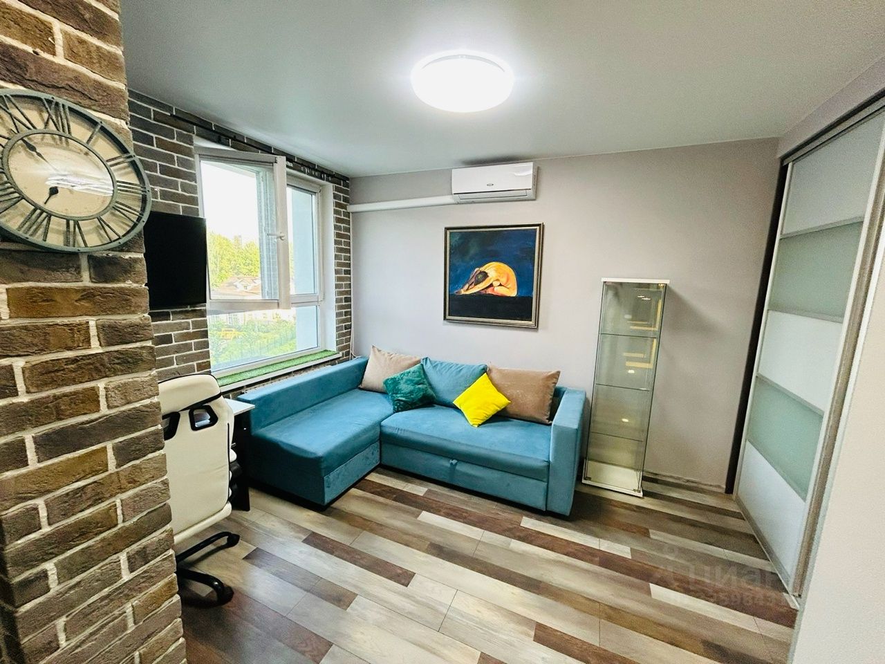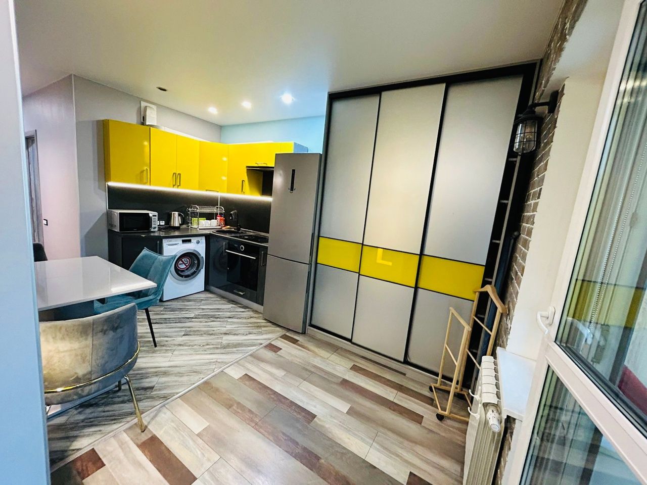 Евродвушка! Отдельная спальная зона и гостиная! Квартира оборудована мебелью - большой шкаф, удобный диван в гостиной и двуспальная кровать в спальне! Два жк Телевизора. Кухонный гарнитур, холодильник. Стиральная машина. Рядом с домом магазины, школа,банк,