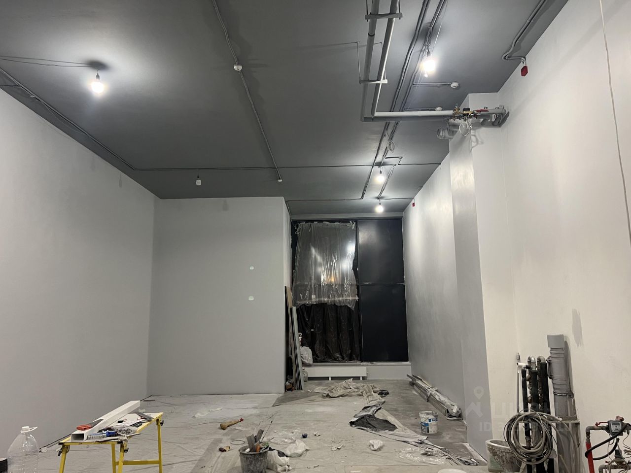 * Коммуникации: водопровод, вентиляция изолированные трубы на крышу диаметром 160мм,125мм,100мм,+приточная вентиляция,место для блока кондиционирования 2 шт,расположение внутри помещения согласно проекту. Мокрая точка одна . отопление центральное+тепловая завеса тепломаш КЭВ-29п212W(13500Вт) *Ремонт стены отшпаклеваны под покраску,на полу произведена-гидроизоляция92м , стяжка в уровень с тротуаром ,плитка керамогранит 60/120 ,произведены электромонтажные работы,