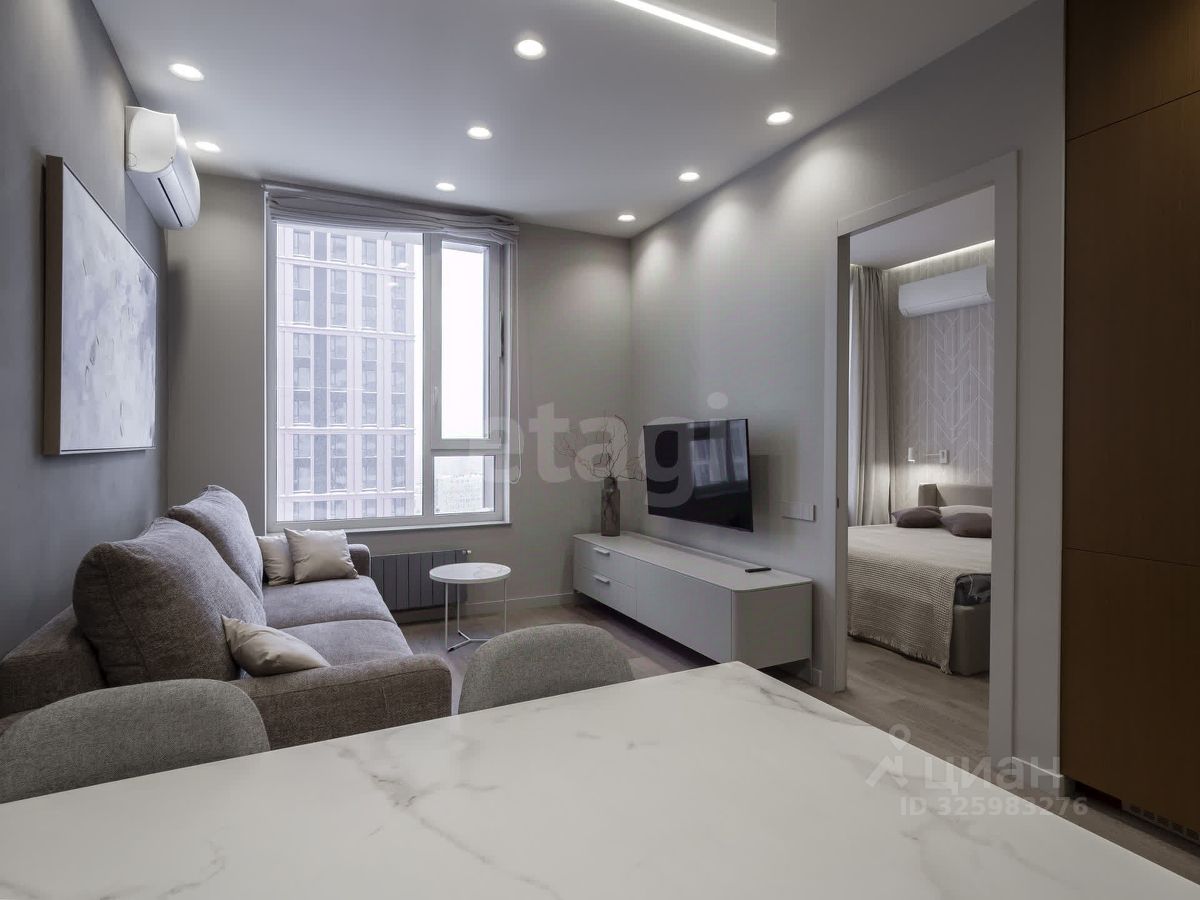 О КВАРТИРЕ: - евро-двухкомнатная квартира с ремонтом по дизайн проекту - этаж 22/34 - вид на северо-восток - площадь по ЕГРН 45.9 м² - совмещенный санузел - гардеробная при входе - кухня-гостиная - потолки 3.15 метра (от бетона до бетона), с учетом стяжки пола и полотка от 2.9м. до 3 м. - техника: стиральная машина, сушильная машина, холодильник с морозильной камерой, духовой шкаф, вытяжка, электрическая плита, посудомоечная машина, 2 кондиционера, 2 ТВ, подогрев пола в санузле. - контурный свет - имеется парковочное место (в цену не входит)