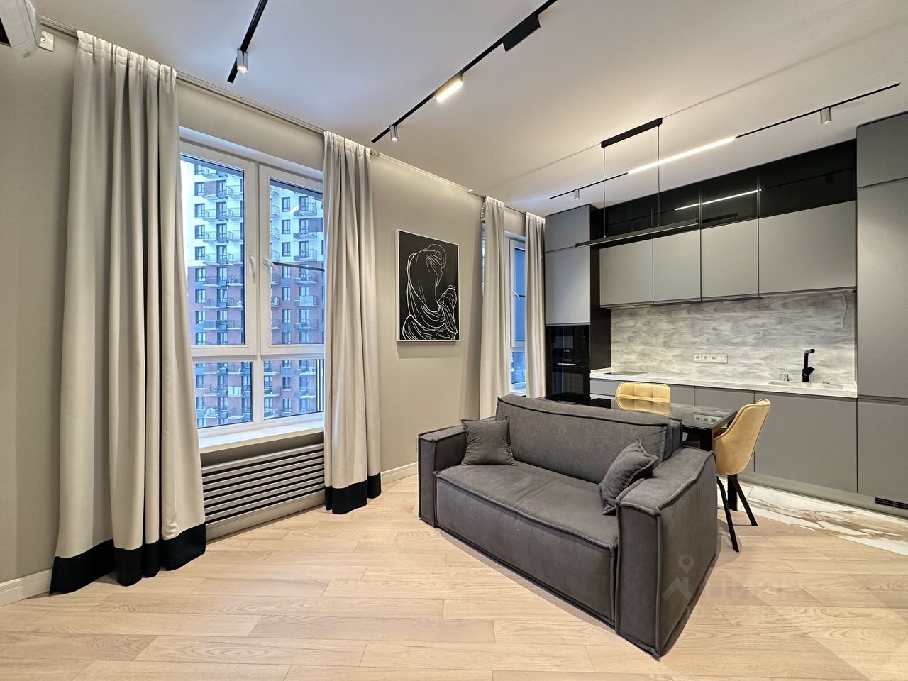 Просторная студия 37,6 кв. м. с авторским евроремонтом, выполненным по индивидуальному дизайн-проекту. Здесь продумана каждая деталь. Пространство зонировано на уютную спальную зону, просторную гостиную и функциональную кухню с современной техникой известных брендов (холодильник, варочная панель, духовой шкаф, посудомоечная машина, вытяжка). Вся мебель и техника остаются новому владельцу — вы можете заехать с одним чемоданом.