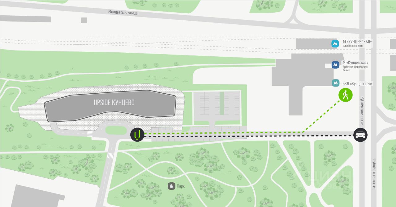 Здание и локация: -БЦ Upside Kuntsevo, класс A -Пешком до метро Кунцевская — 4-5 минут -Активный деловой район -Удобный подъезд, парковка