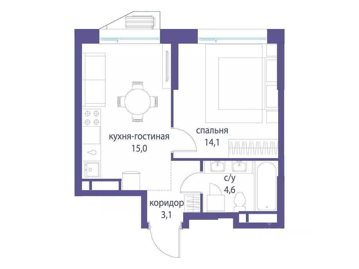 Жилая площадь14,1 м2