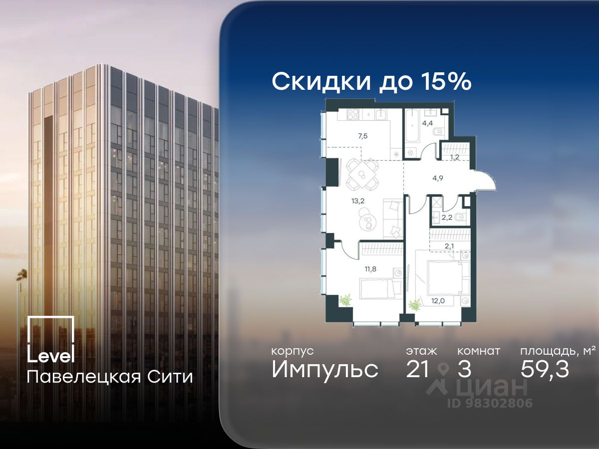 продам 3-к, Павелецкая Сити ЖК, 1536 885 959 ₽
