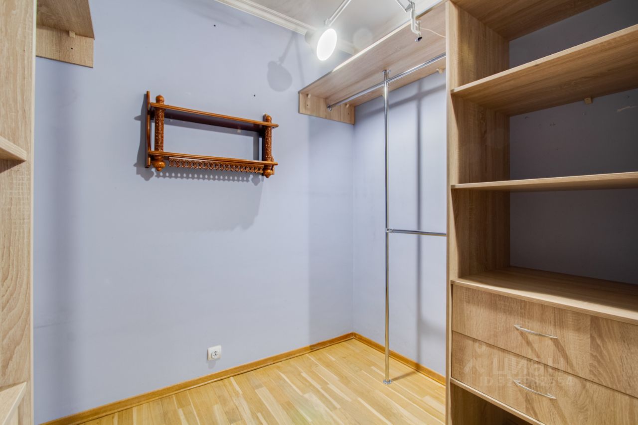 Большая комната 21,5 м2 с выделенной зоной под гардеробную и кондиционером. В коридоре расположен вместительный шкаф-купе. Санузел совмещенный. Лоджия прилегает к кухне. В подъезде консьерж, въезд во двор под шлагбаум. Квартире требуется косметический ремонт.