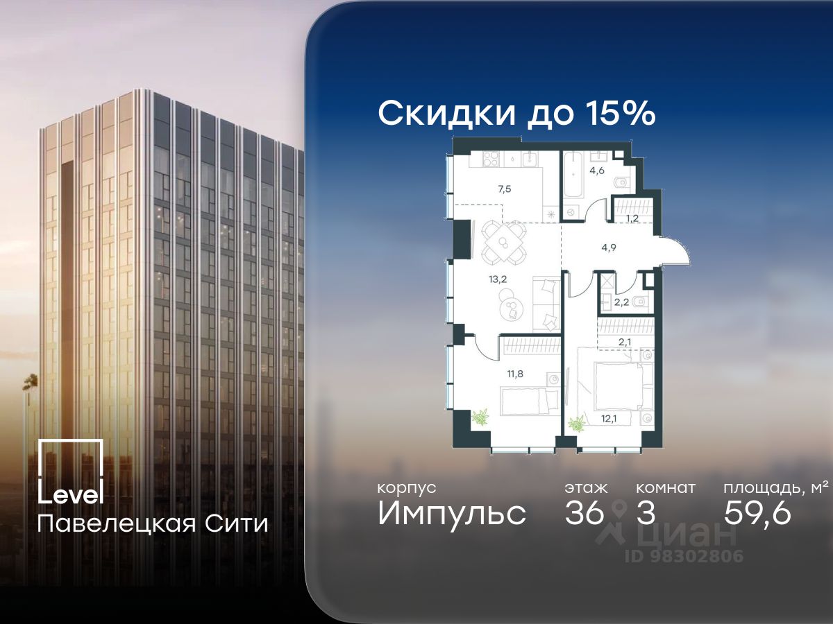 продам 3-к, Павелецкая Сити ЖК, 1541 406 819 ₽