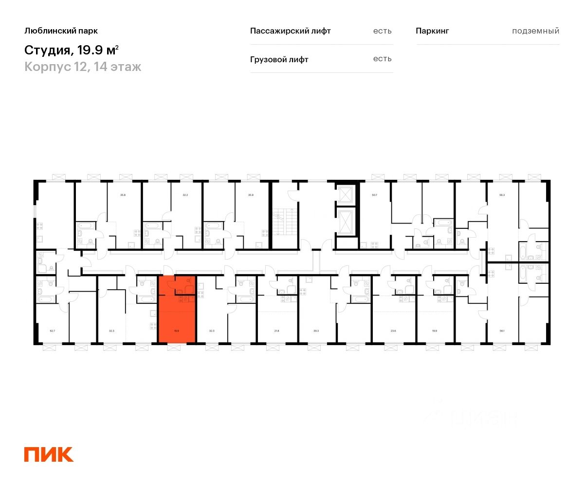 Продаётся квартира-студия площадью 19,9 кв.м на 14 этаже 16 этажного дома (Корпус 12, Секция 7) проекта ПИК Люблинский парк. Светлый просторный подъезд на уровне земли, функциональная планировка, большие окна, c отделкой.