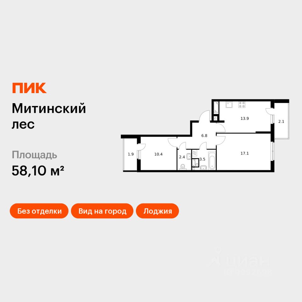 Продаётся 2-комн. квартира площадью 58,1 кв.м на 22 этаже 24 этажного дома (Корпус 15, Секция 2) проекта ПИК Митинский лес. Светлый просторный подъезд на уровне земли, функциональная планировка, большие окна, без отделки.