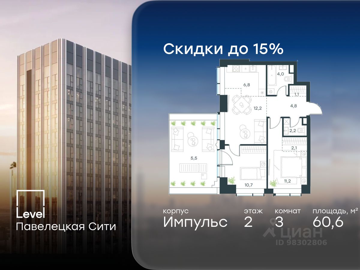 продам 3-к, Павелецкая Сити ЖК, 1546 516 239 ₽