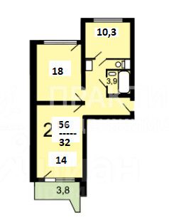 Код объекта: 2001200. ДВУХКОМНАТНАЯ КВАРТИРА 56 кв.м.