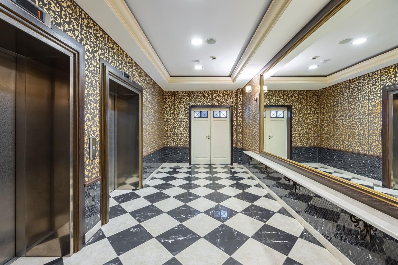 В доме охрана, паркинг, спортзал и ресторан.