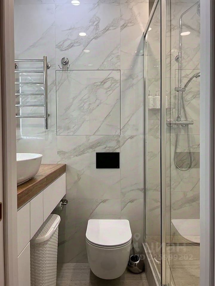 В студии выполнен дизайнерский ремонт, который создаёт атмосферу стиля и уюта. В комнате и на кухне есть вся необходимая мебель, чтобы вы могли сразу заселиться и чувствовать себя как дома. Из техники в вашем распоряжении: холодильник, кондиционер, телевизор, стиральная и посудомоечная машины. Ванная комната оборудована современной душевой кабиной, что делает её использование комфортным и удобным.