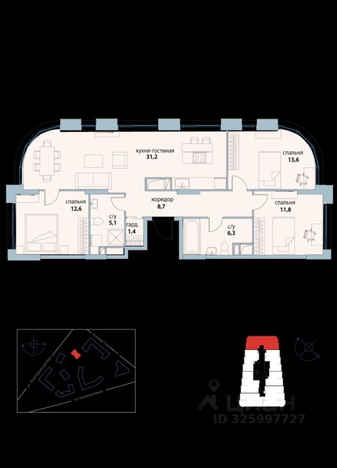 продам 3-к, Крузенштерна, 3 корп. 253 500 000 ₽