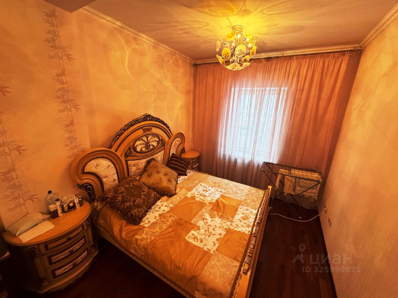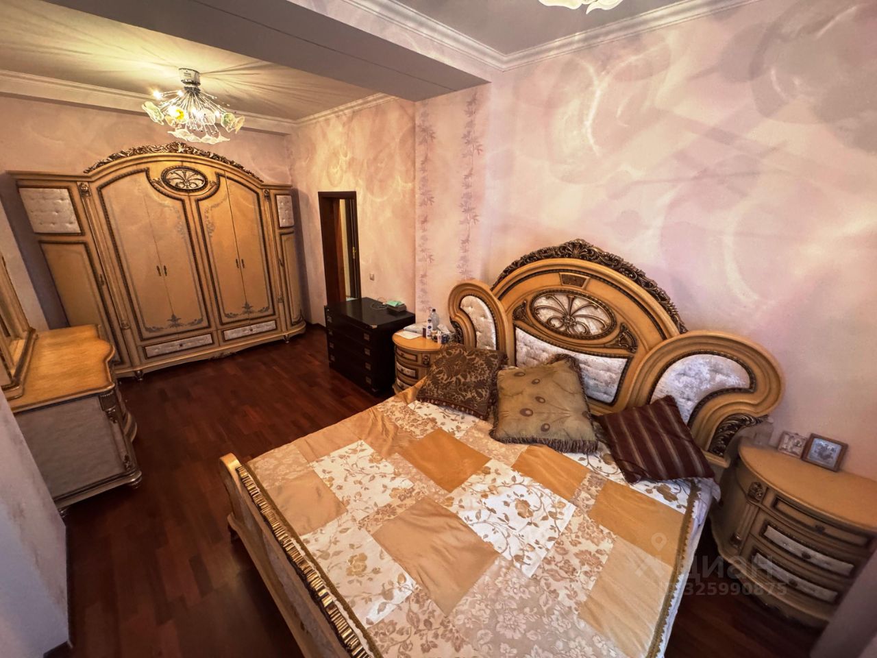 Спальня выполнена в итальянском стиле с дорогой и эксклюзивной мебелью.