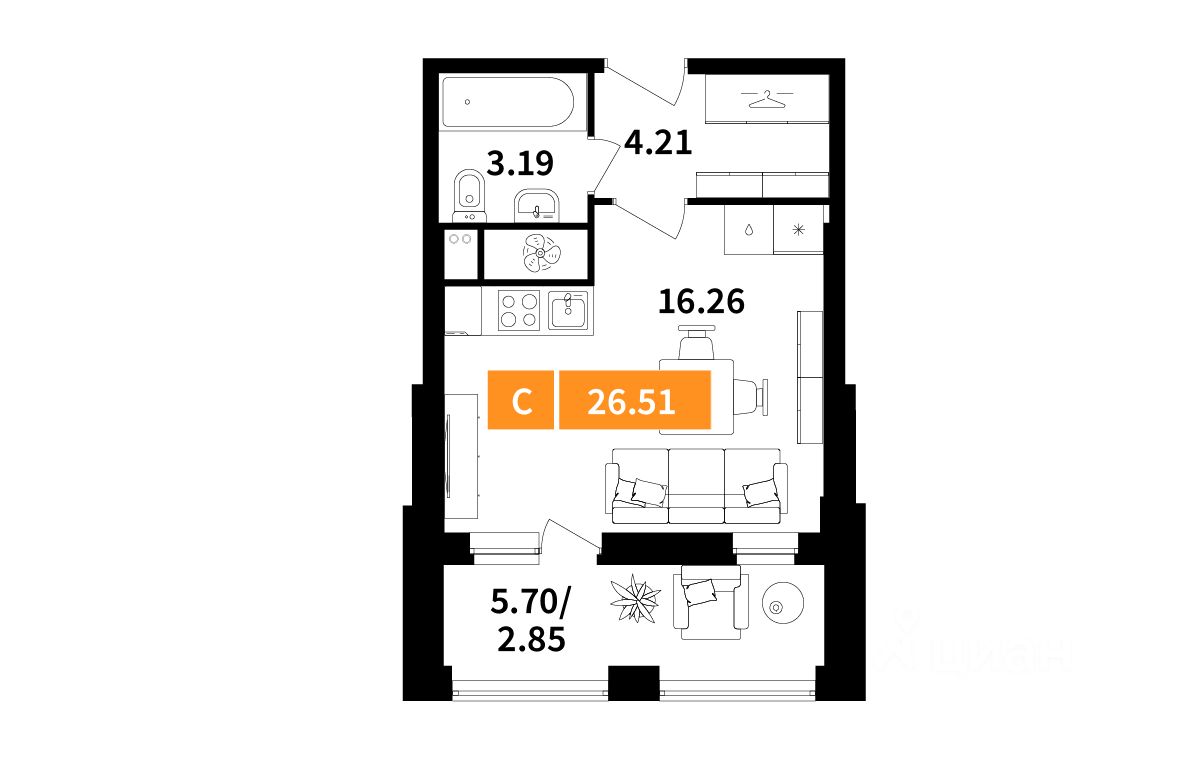Общая площадь26,51 м2