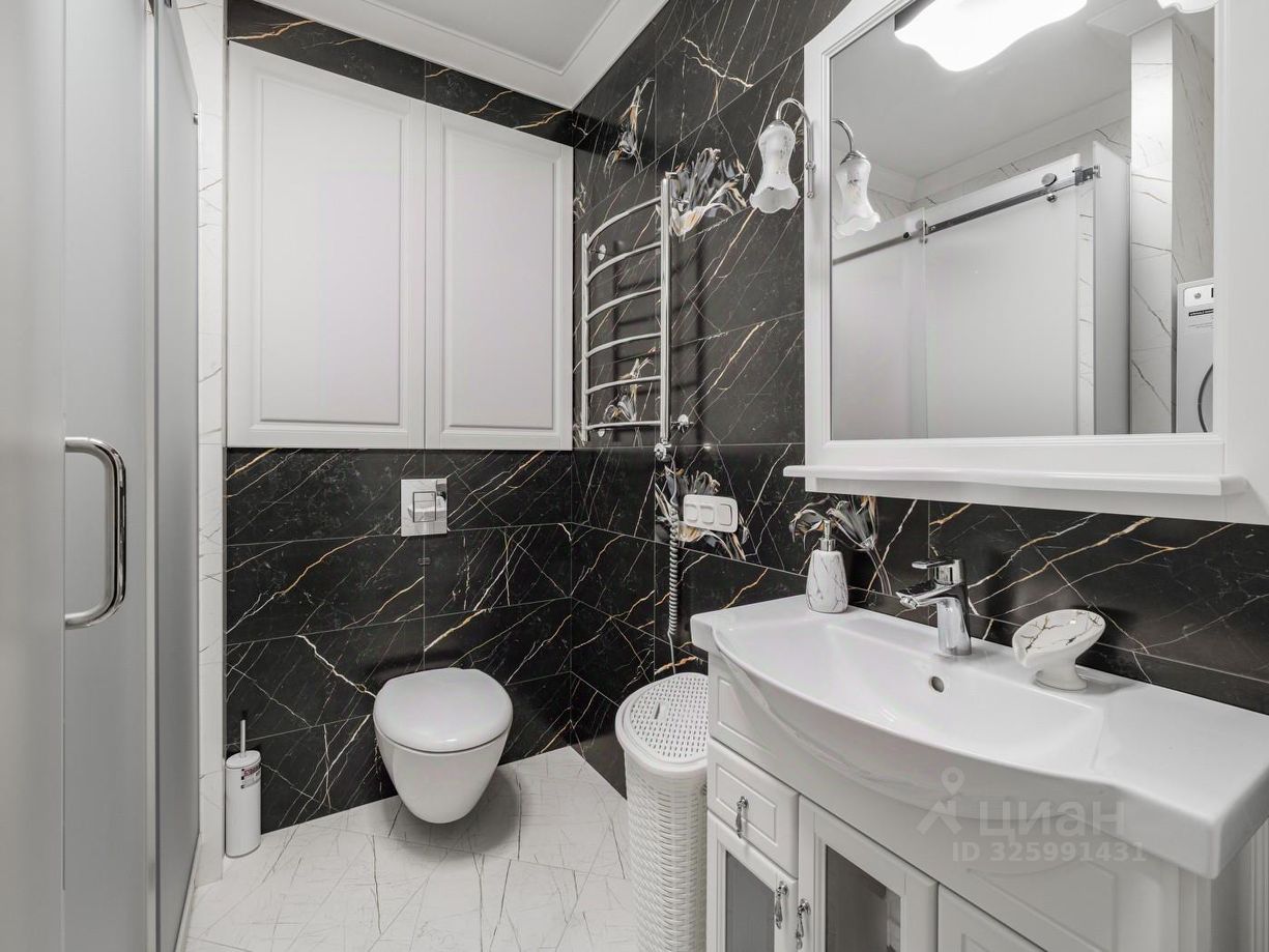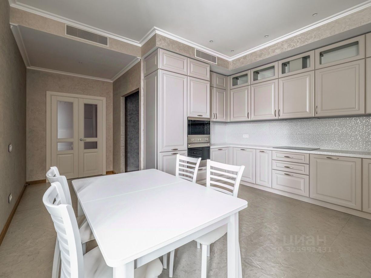 Бытовая техника: двустворчатый холодильник, посудомоечная, стиральная и сушильная машины премиальной марки. Квартира находится на высоком этаже и тихой секции.