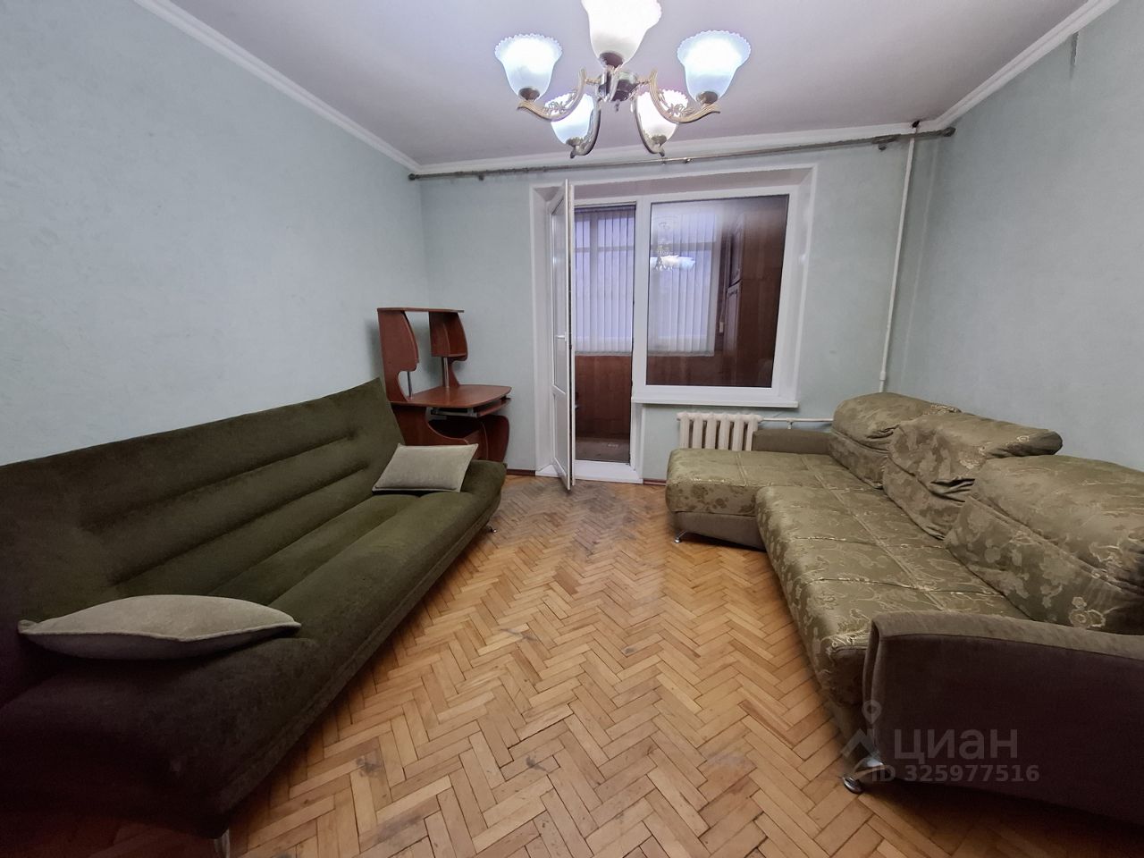 Комната с альковом. Большая лоджия, на комнату и кухню, в торцах сделаны шкафы для хранения.