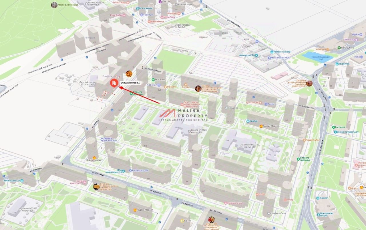 Аренда торгового помещения 105 м2 на ул. Лаптева, д. 7 (10 минут транспортом от метро ''Филатов луг''). 1-я линия домов.