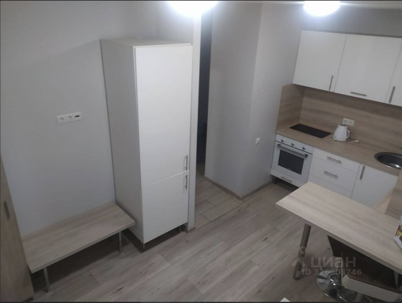 Есть вся необходимая мебель и бытовая техника для комфортного проживания: двуспальная кровать, шкаф для хранения, кухонный гарнитур, холодильник, плита и стиральная машина.