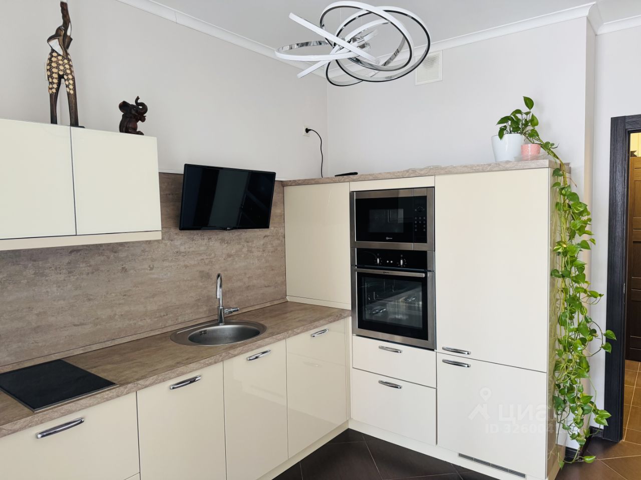 Однокомнатная квартира в отличном состоянии с хорошим ремонтом. Встроенная кухня фирмы стильные кухни с встроенной бытовой техникой Neff (духовой шкаф, плита, посудомоечная машина, вытяжка, холодильник, микроволновая печь). Большая оборудованная гардеробная. Кондиционер, регулируемые радиаторы.