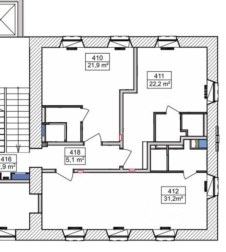 Бизнес-студия общей площадью 31,2 кв.м., находится на 4-м этаже административного здания, имеет 4 окна, 3 во внутренний двор здания, одно с торца. В здании есть новый современный лифт.
