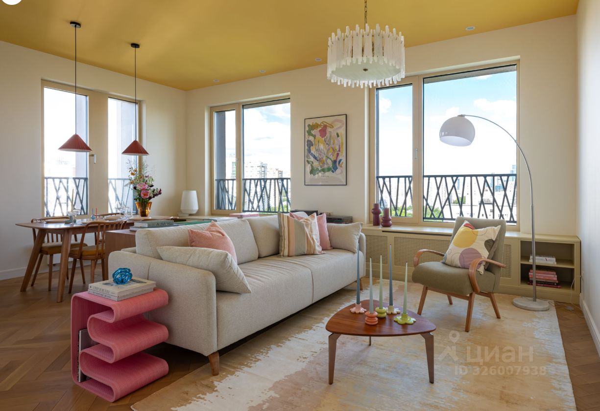 Дизайнерский ремонт: кухня-гостиная, спальня, гардеробная, совмещенный санузел. Панорамные окна в пол открывают потрясающие виды на город.