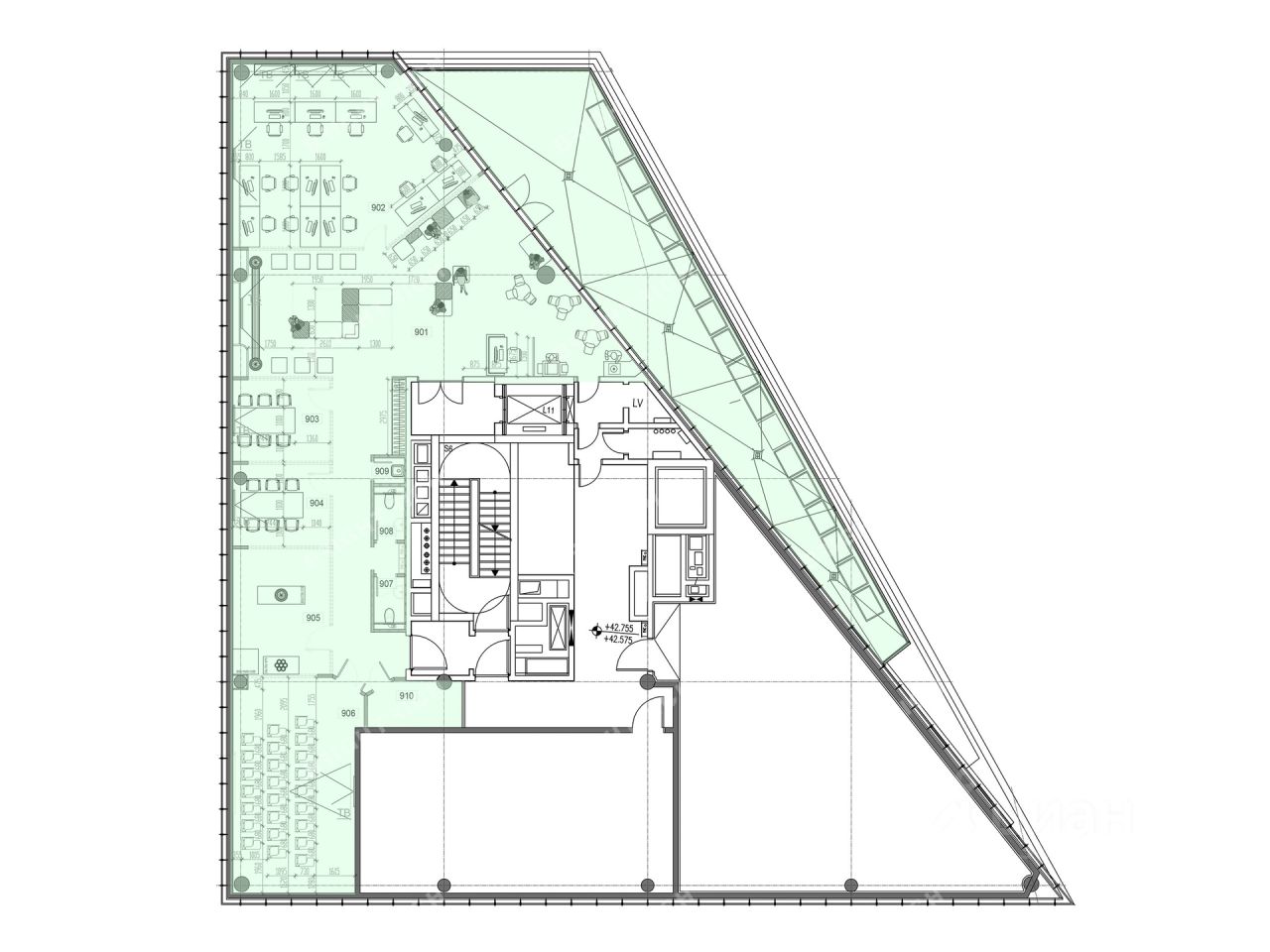 Характеристики: - Класс: A, - Код налоговой: 31, - Арендопригодная площадь: 29000, - Высота потолков: 3.65 м, 4.2 м, - Наличие лифта: Есть, - Кол-во мест подземного паркинга: 400.