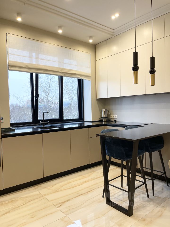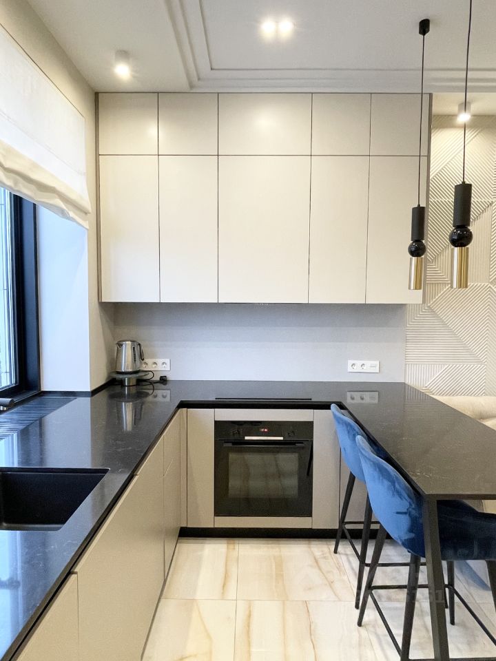 Премиальная кухня полностью оборудована дорогой встроенной техникой (холодильник, посудомоечная машина, духовой шкаф, микроволновая печь, варочная поверхность, измельчитель отходов, фильтр очистки воды), столешница из камня возле окна из которого открывается панорамный вид на зеленый массив и историческую усадьбу. В спальне на кровати новый ортопедический матрас.