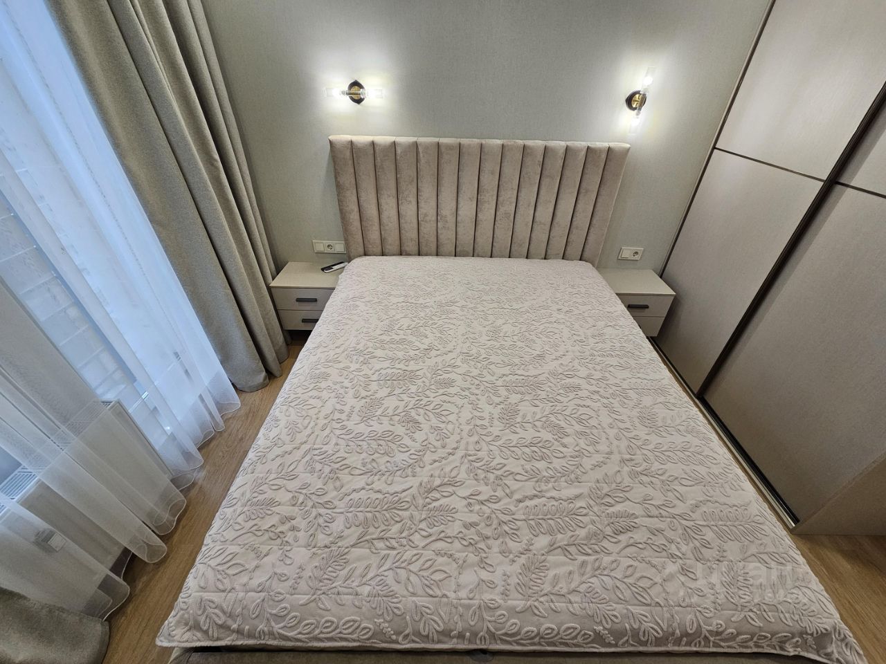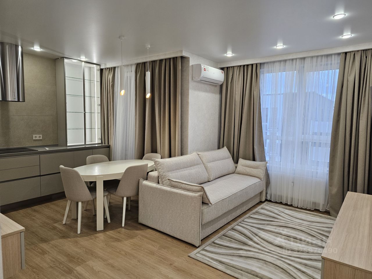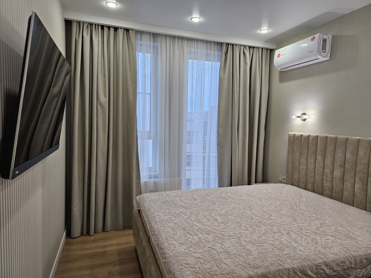 В квартире выполнен дизайнерский ремонт, всё абсолютно новое,что создает современную и комфортную атмосферу. Обставлена мебелью в комнате и на кухне, поэтому вам не придется заботиться о дополнительных покупках. Полностью оборудованная кухня: холодильник, посудомоечная,плита, духовка,посудомоечная машина и два кондиционера. В ванной комнате установлена ванна, санузел раздельный.