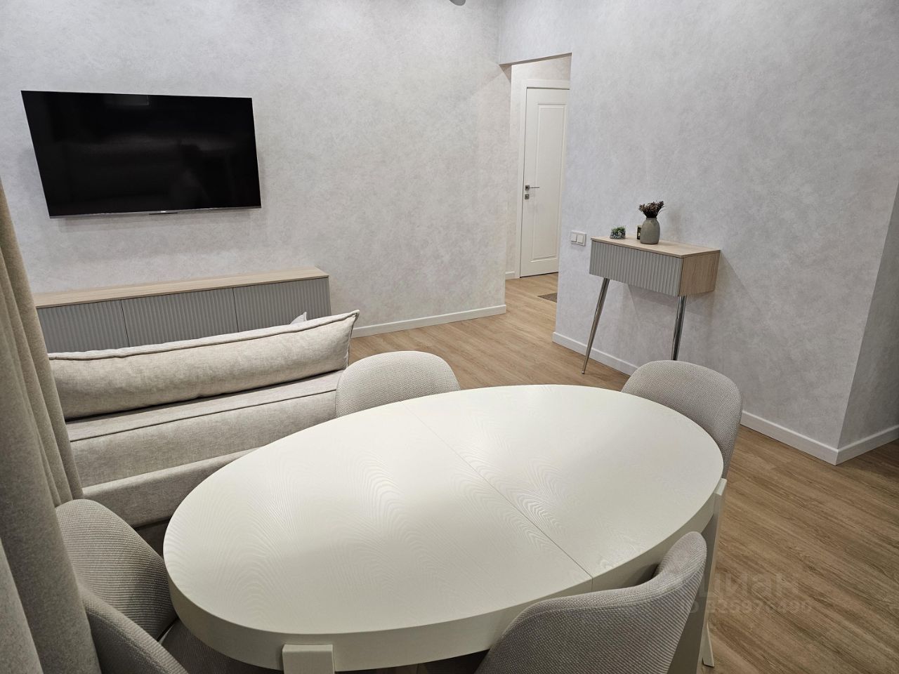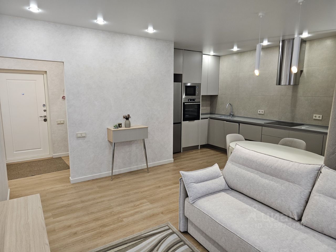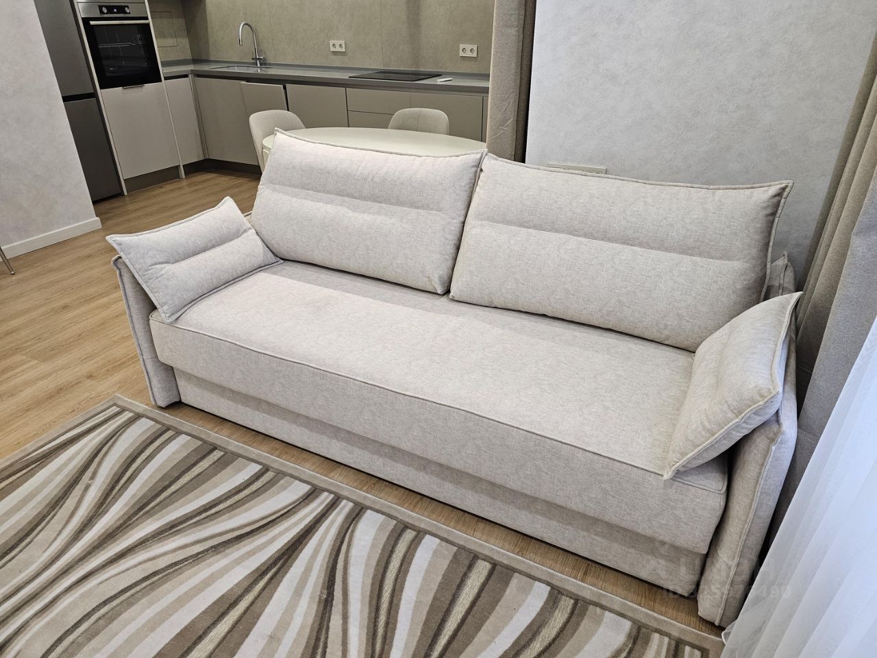 В квартире выполнен дизайнерский ремонт, всё абсолютно новое,что создает современную и комфортную атмосферу. Обставлена мебелью в комнате и на кухне, поэтому вам не придется заботиться о дополнительных покупках. Полностью оборудованная кухня: холодильник, посудомоечная,плита, духовка,посудомоечная машина и два кондиционера. В ванной комнате установлена ванна, санузел раздельный.