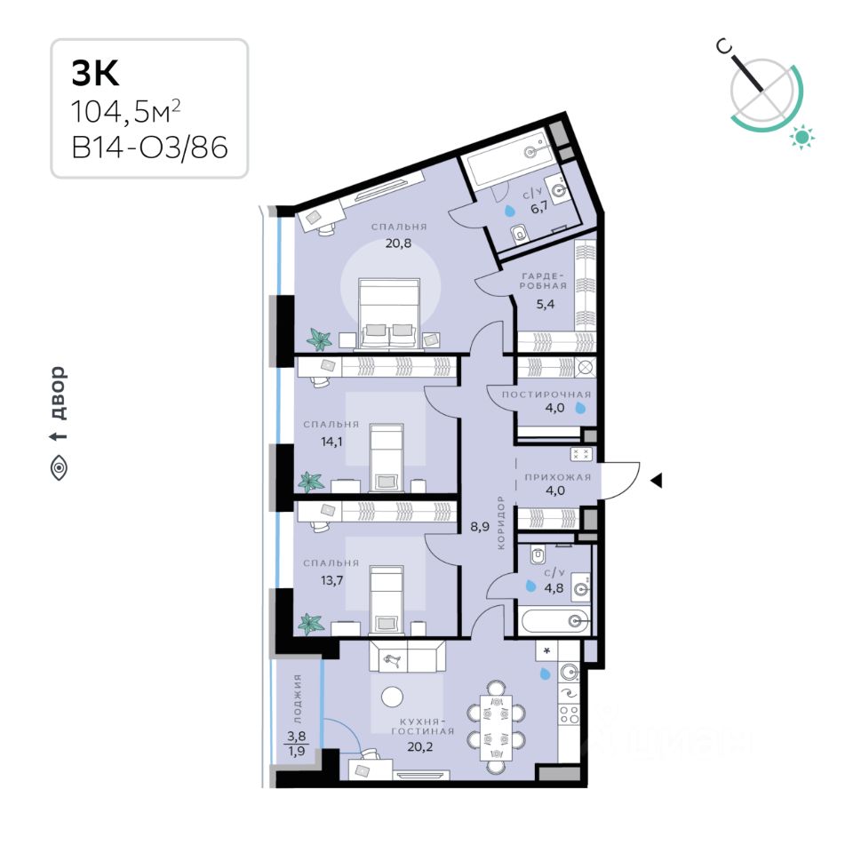 Общая площадь104,5 м2