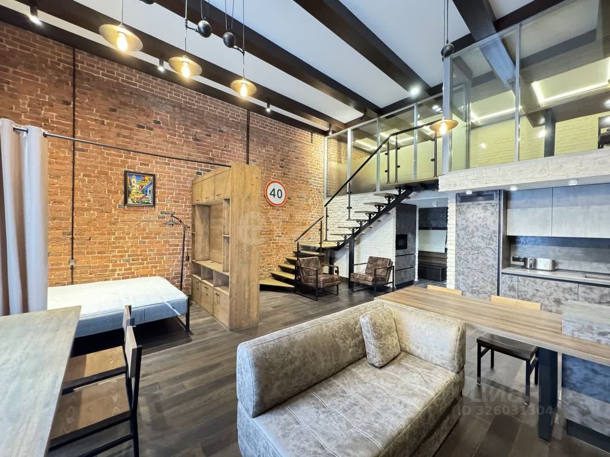 Об апартаментах и жилом комплексе: Жилой комплекс расположен на тихой Садовнической улице. Общая площадь 80 кв. м., апартамент расположен на третьем этаже, окна выходят во двор. Апартаменты полностью укомплектованы хорошей мебелью и бытовой техникой. На первом уровне располагается просторная кухня-гостиная со вторым светом и настоящим дровяным камином, а так же вместительная гардеробная и санузел. На втором уровне изолированное спальное место. В доме всего 40 апартаментов.