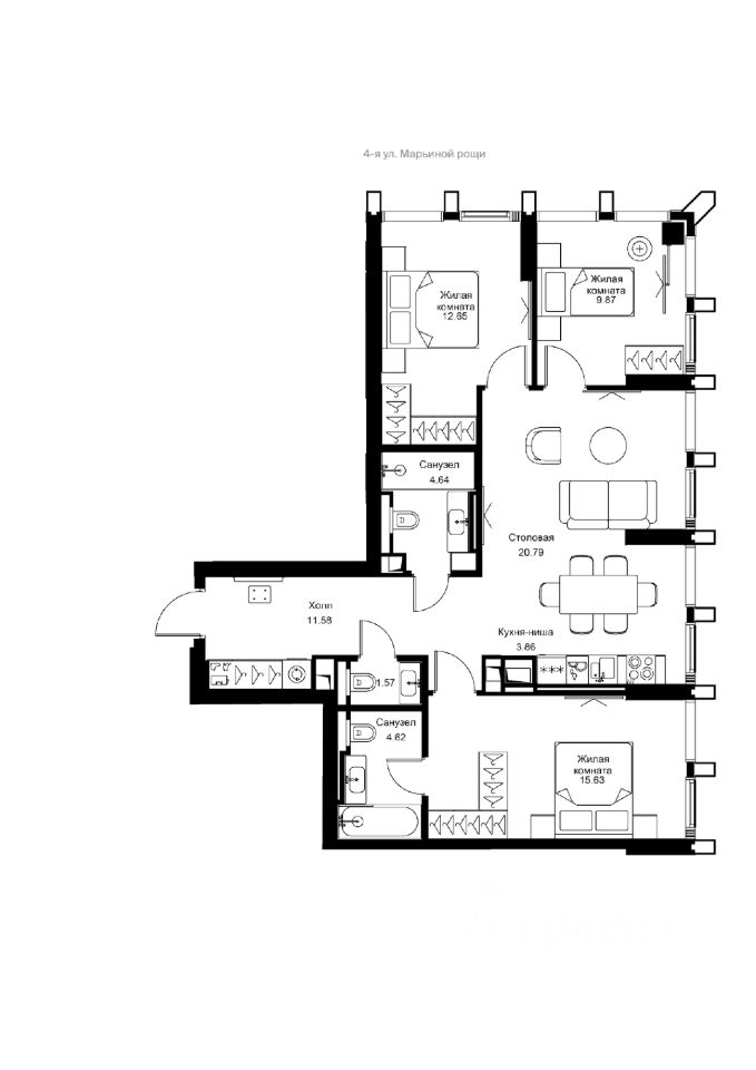 Предлагается светлая 3-х комнатная квартира, общей площадью 85,4 кв.м., расположенная на 12 этаже 44- этажной секции CAMUS. Выполнена отделка White Box. Панорамные окна смотрят на север и северо-восток. Вид из окон кухни-гостиной открывается на Останкино.