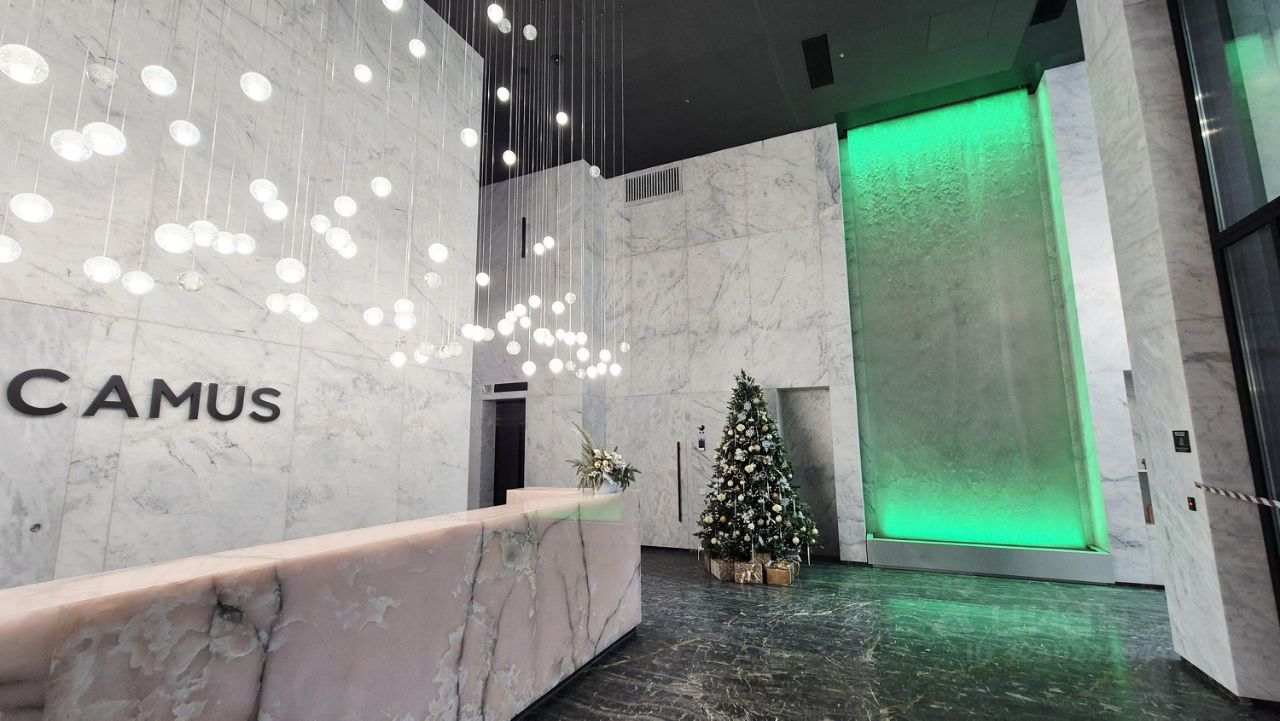 Внутренняя территория. Закрытая территория. Организован ландшафтный многофункциональный двор с приватной территорией и круглосуточным видеонаблюдением. Пространство разбито на тихие зоны отдыха, разновозрастные детские площадки и спортплощадки. Кафе, рестораны и магазины, а также многофункциональный образовательный центр с детским садом на территории комплекса. Двухуровневый подземный паркинг и кладовые. Фасады высотных башен облицованы натуральным камнем.