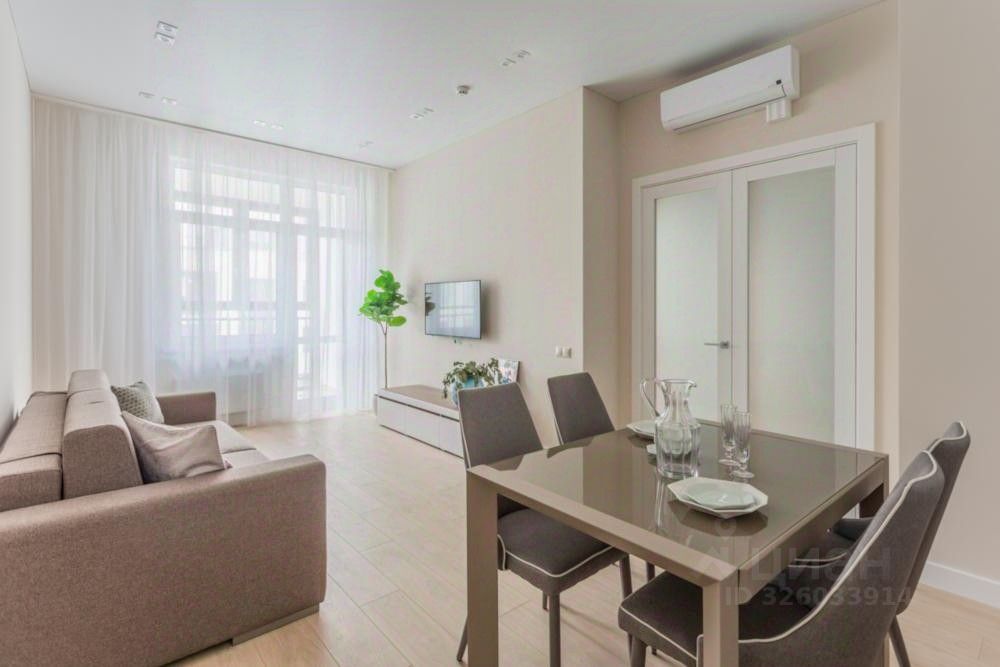 Идут показы с датой заселения после 03.02.2026. Апартамент доступен к просмотру и бронированию! Предлагается в долгосрочную аренду светлая 3х-комнатная студия в арендном доме ''Символ'' от ДОМ.РФ. 321 Доступна рассрочка оплаты депозита на 3 месяца! Без комиссии. Разрешено проживание с животными! Апартамент с индивидуальным интерьерным решением в современном стиле, качественной отделкой, мебелью и техникой для жизни от ведущих брендов (Hotpoint Ariston): - Встраиваемая бытовая техника, - Посудомоечная и стиральная машины, - Электрическая варочная панель, - Холодильник, - Два кондиционера, - Плазменный телевизор В квартире размещён полный комплект необходимой мебели: - современный кухонный гарнитур, - обеденный стол со стульями на 4 персоны, - тумба под телевизор, - двуспальный раскладной диван, - двуспальная кровать, - прикроватные тумбы, - диван-кровать, - письменный стол со стулом, - три вместительных шкафа, В совмещенном санузле есть ванна и стиральная машина. Услуги консьерж-сервиса 24/7 включены в арендную плату (прием корреспонденции, заявок на ремонт, выдача гостевых пропусков, и т.д.), дополнительно можно заказать: доставку воды, уборку, стирку, глажку, уход за животными и многое другое. Разрешено проживание с животными!