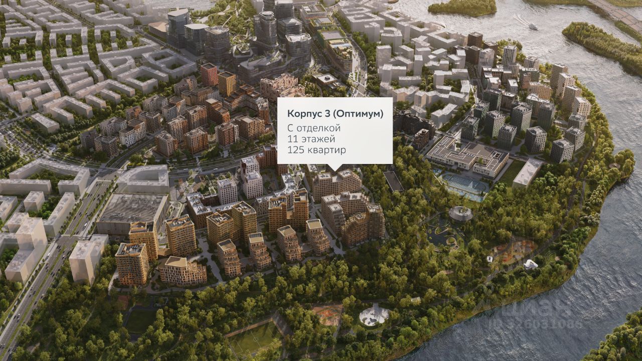 В продаже — трехкомнатная квартира с чистовой отделкой, общей площадью 110,3 кв. м. Квартира расположена на втором этаже десятиэтажного корпуса Оптимум в квартале В14 нового района СберСити, который строит Сбер.
