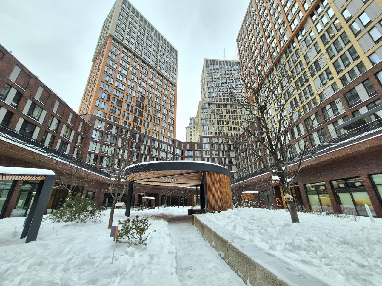 Территория жк включает в сеья Закрытый, охраняемый внутренний двор без машин, с прогулочными дорожками, местами для тихого отдыха, двумя детскими площадками для разных возрастных групп, уединенными перголами и большой круглой беседкой, Просторные входные группы с витражными окнами и скоростными лифтами. Зона коворкинга, для встреч и делового общения.