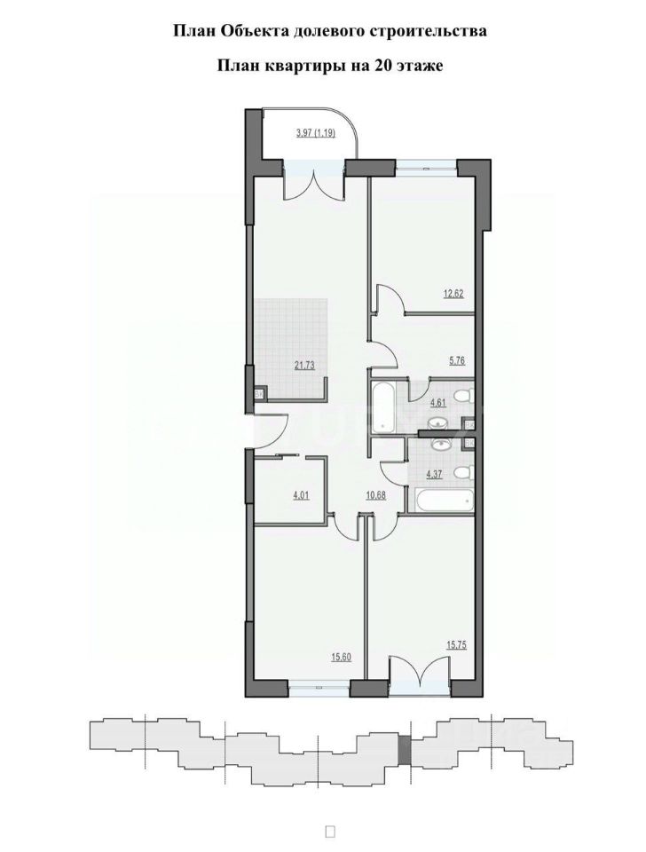 Функциональная планировка: просторная кухня гостиная с балконом и роскошным видом на Останкинскую телебашню, 3 спальни, 2 санузла, гардеробная. Инженерные системы: Центральная приточная вентиляция с фильтрацией, очистка воды, круглогодичное ГВС и подготовка под кондиционирование.