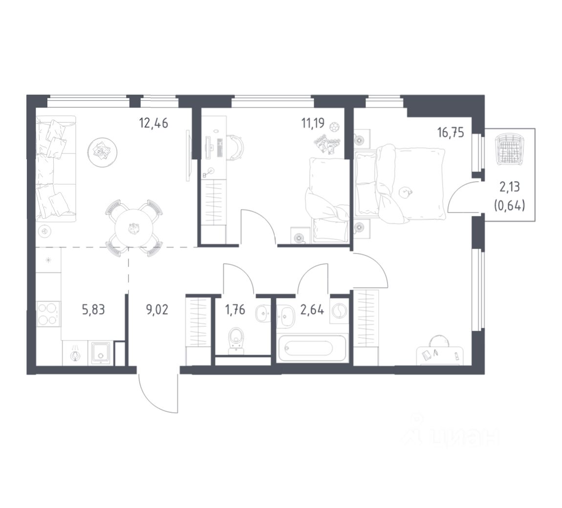 Строим кварталы для жизни с заботой о будущем. Предлагается 2-комнатная квартира комфорт-класса площадью 60,29 кв.м в корпусе 22 на 3-м этаже, в жилом комплексе ''Остафьево''.
