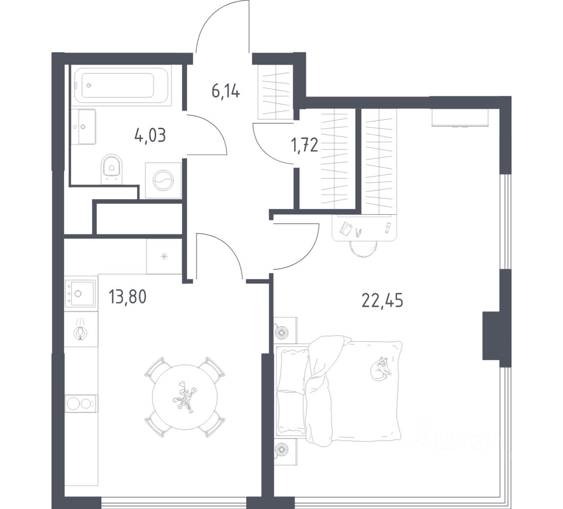 Строим кварталы для жизни с заботой о будущем. Предлагается 1-комнатная квартира бизнес-класса площадью 48,14 кв.м в корпусе 5 на 19-м этаже, в жилом комплексе ''Квартал на воде''.
