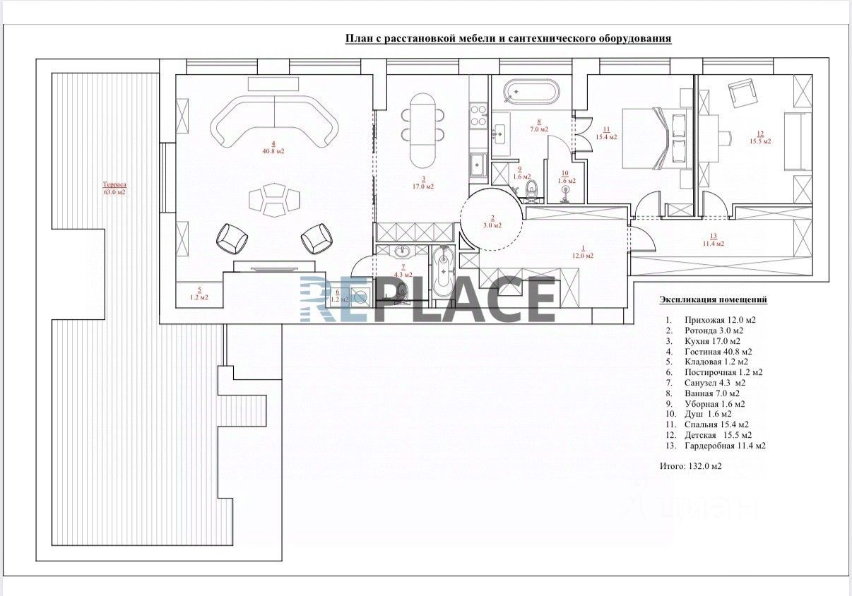 Квартира площадью 132 кв.м. + терраса 63 кв.м.